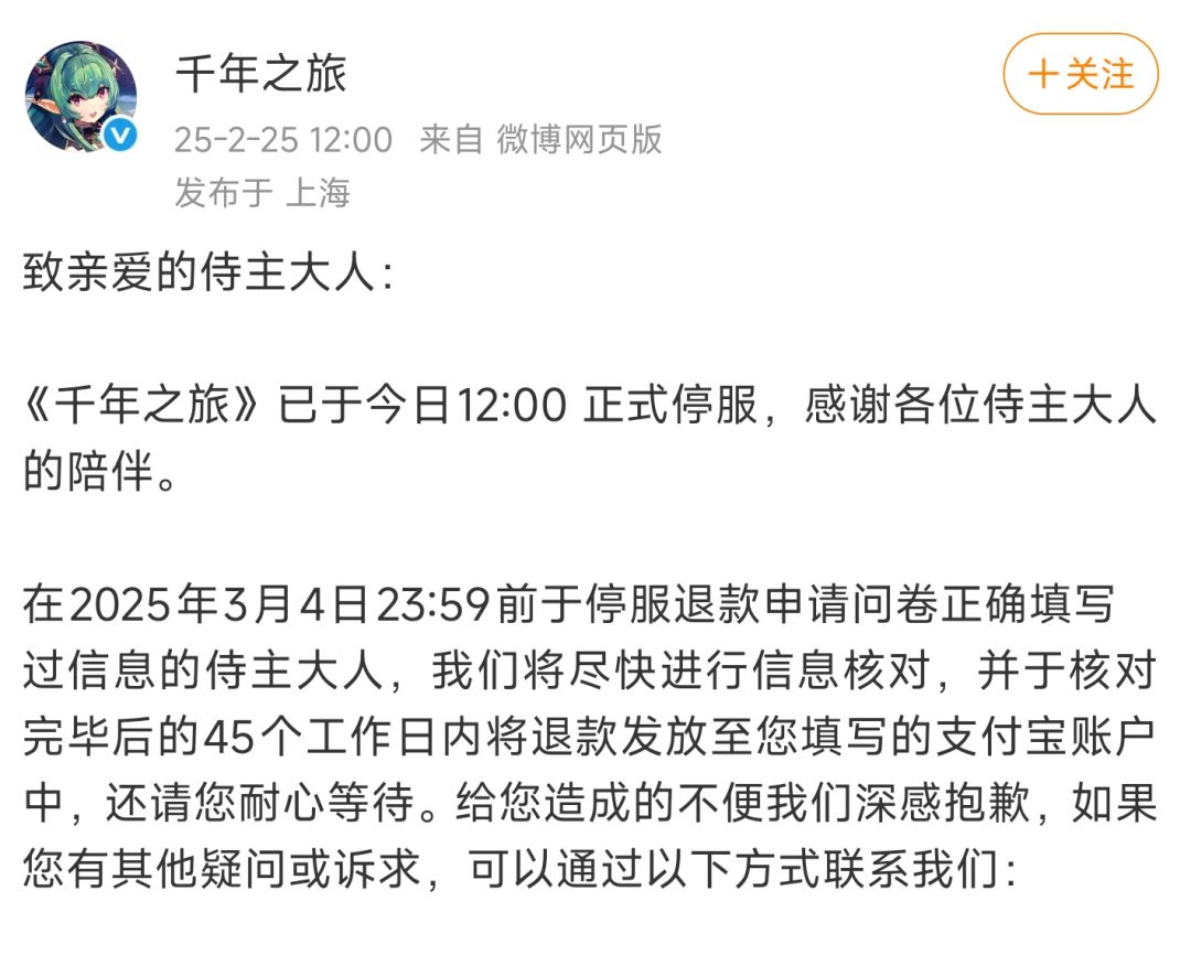 2025年2月25日,正式停服