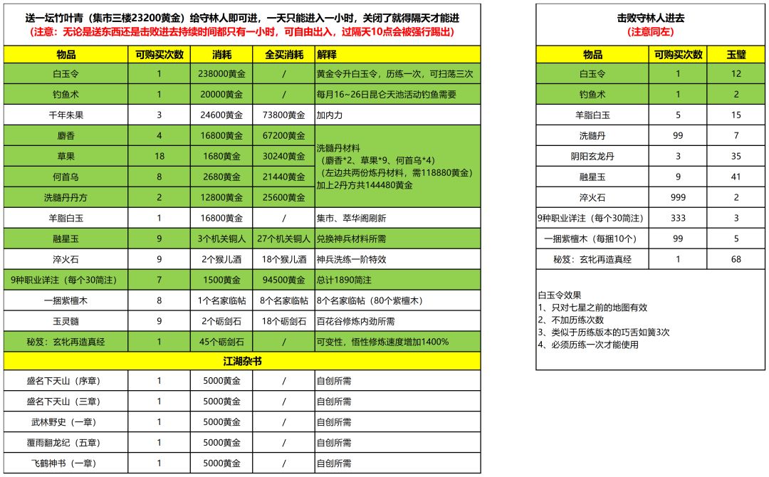 【逍遥林攻略】不同方式进入&商品价格及解释
