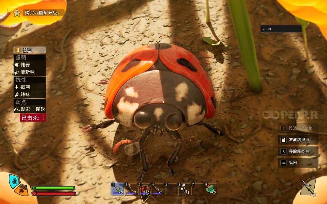 不仅能看到昆虫大乱斗,还能与主动攻击我们的蜘蛛,蚊子,蝎子等大战(前期蚊子就特别烦)。螳螂和狼蛛前期直接避开!