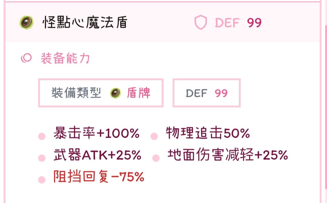 2.姜饼人眨眼(主要是打高防补贯穿用的):9%物理攻击,18%物理贯穿,27%陨石伤害减轻,-5%暴击率