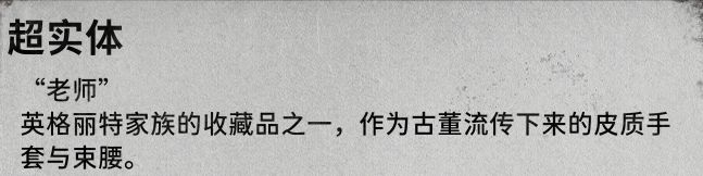 Para2:“老师”是英格丽特家族的古董藏品,或许英格丽特家族可以看做维多利亚时代在游戏中的缩影?