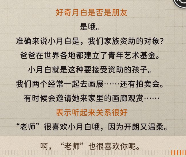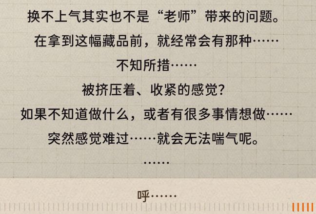 在得到“老师”前,英格丽特也会感到无法喘气,猜测是由于贵族淑女严苛的各项礼仪,以及家族要求英格丽特成为光耀会成员,所带来的心理压力。