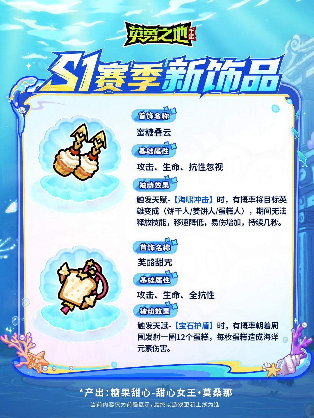 勇士们可通过击败S1赛季限定BOSS【海灵琴主】、【圣代霸主】、【甜心女王·莫桑那】获得。