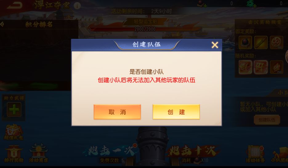 2、小队一旦结成,本次活动期间将无法退出或解散,请主公在选择前慎重考虑。