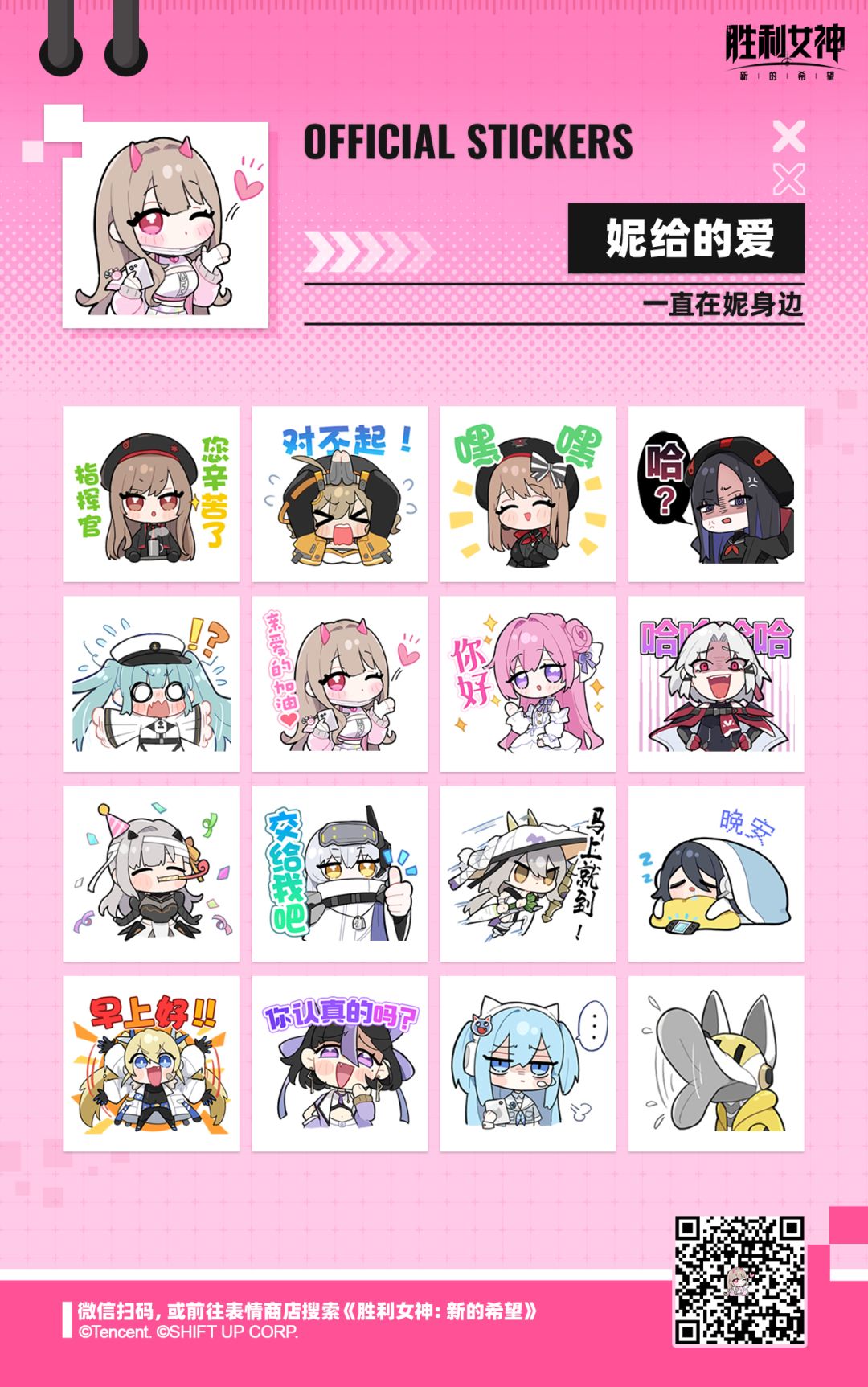 《胜利女神:新的希望》官方表情包「妮给的爱」已开放下载,欢迎指挥官前往【微信表情包商城】、【QQ表情包商城】下载使用~