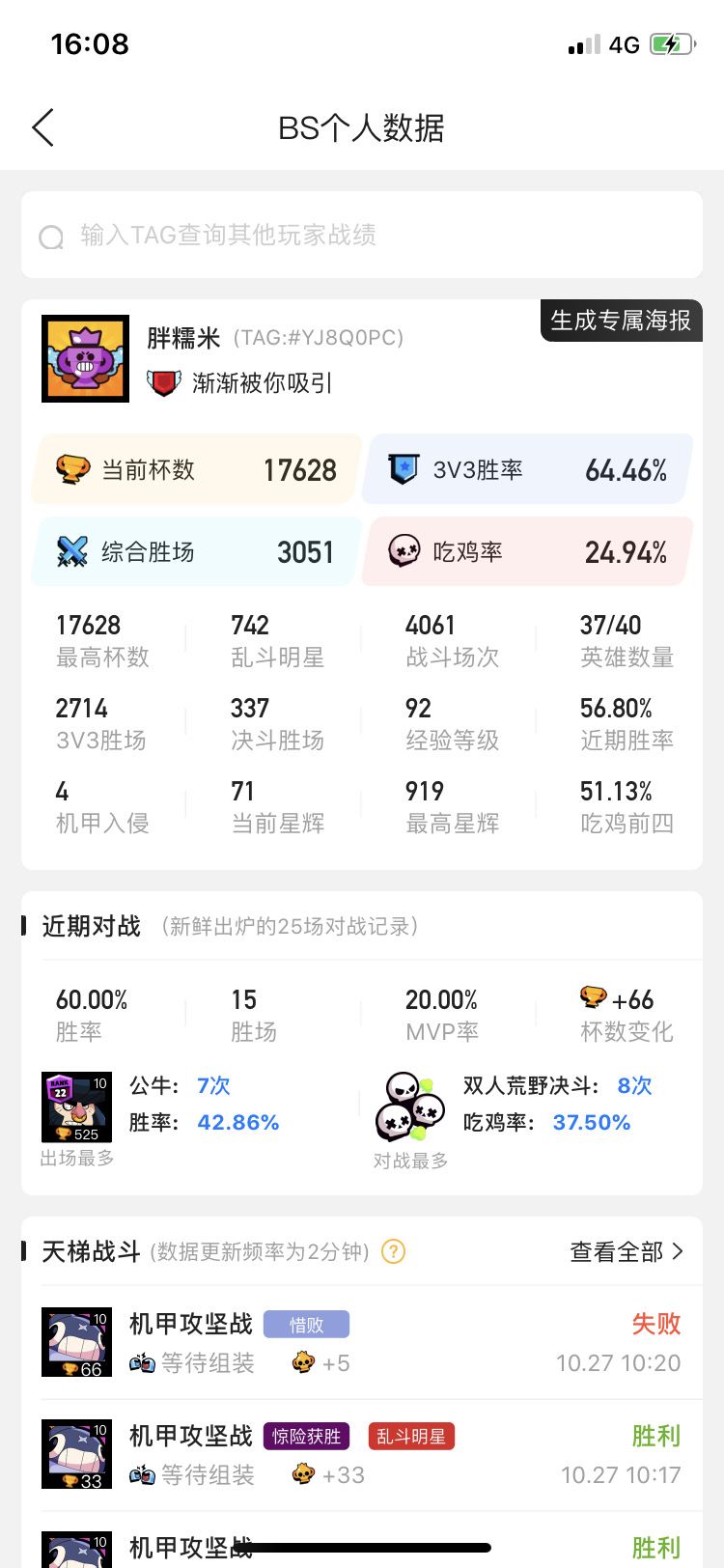目前1.7W杯 各种模式都可以 除了矿车宝石图胜率略低………角色还差琥珀、仙人掌、里昂