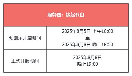 全新服务器【缘起苍山】预创角已开启,本周5正式开服!