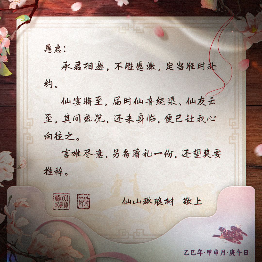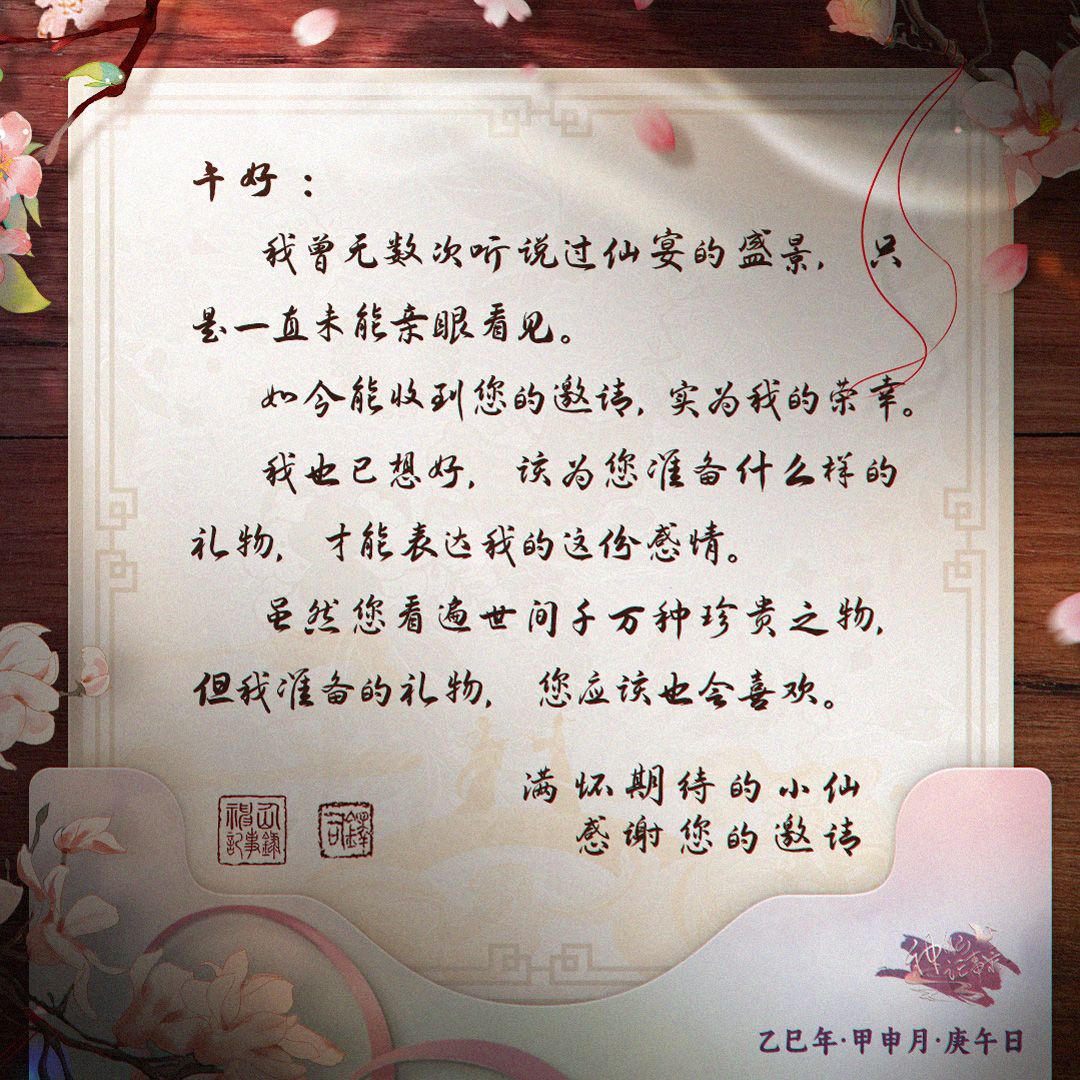 来自欢宴前夕的邀约函请大人查看哦(❁´◡`❁)