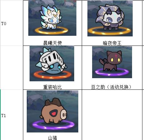 曦天使>暗夜帝王>重装哈比>山猪=豆之助