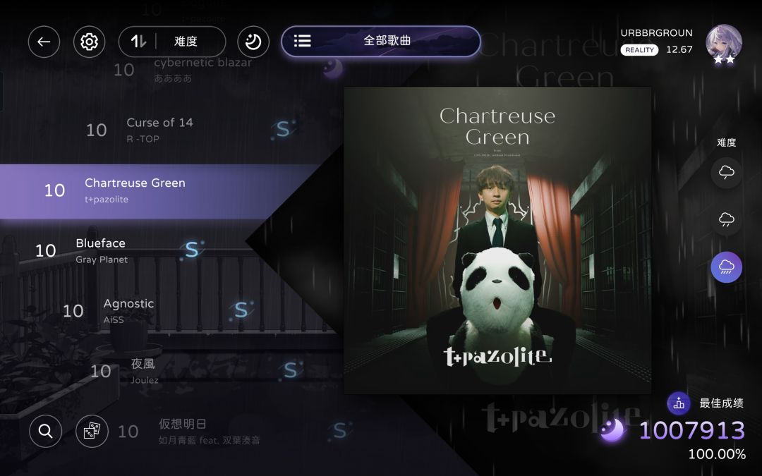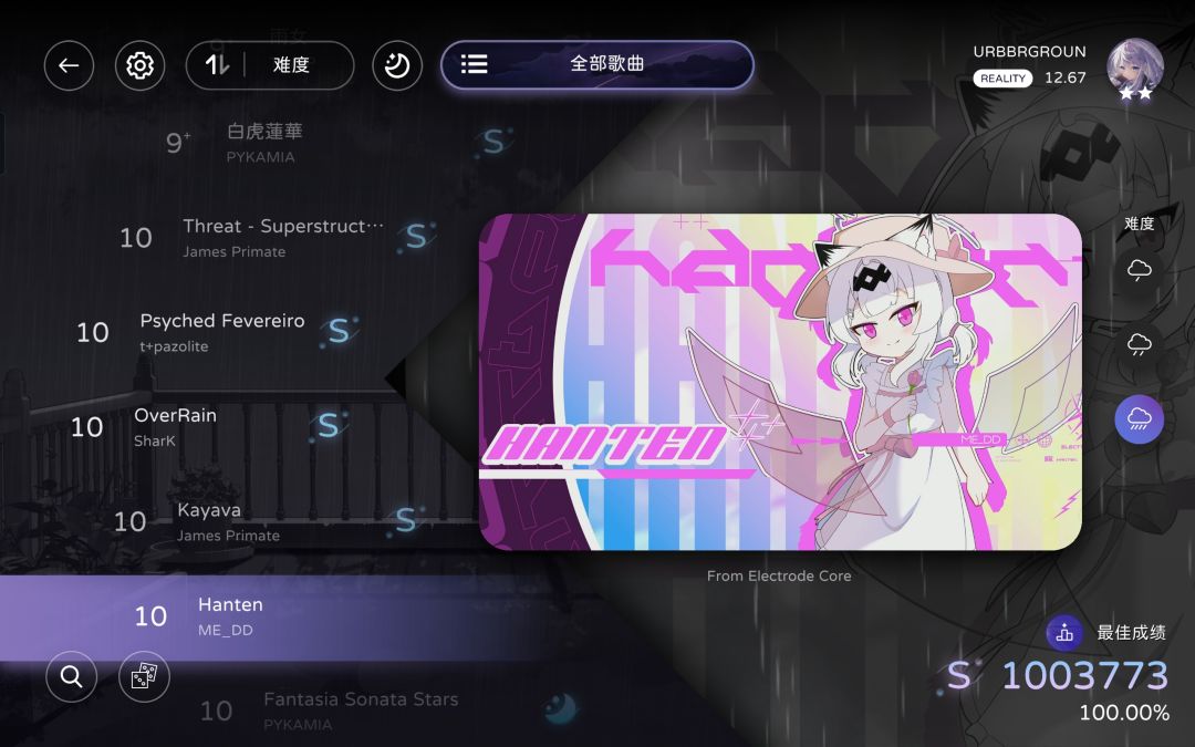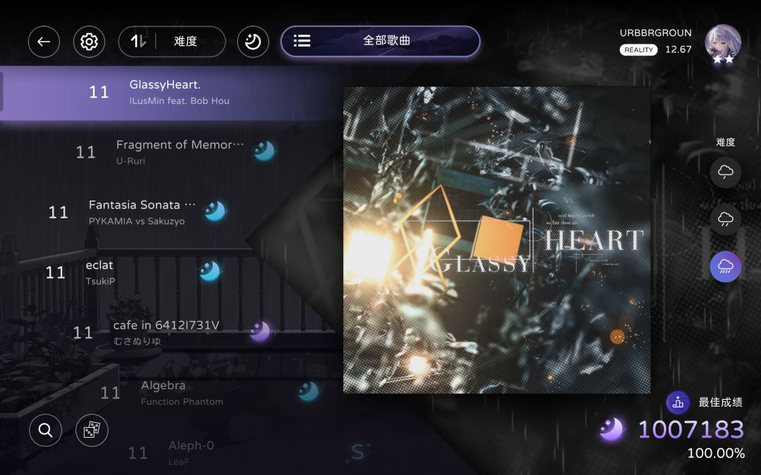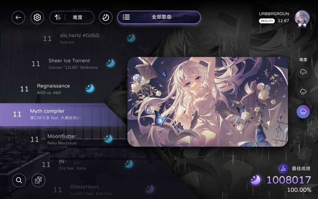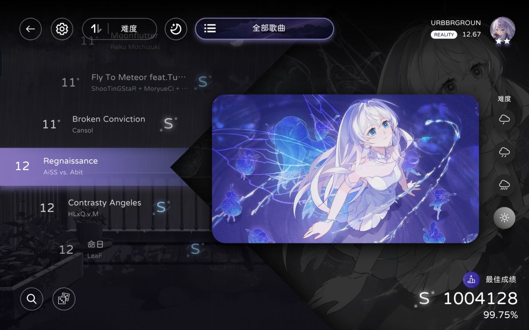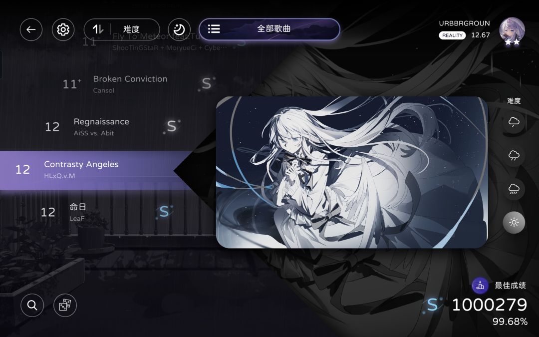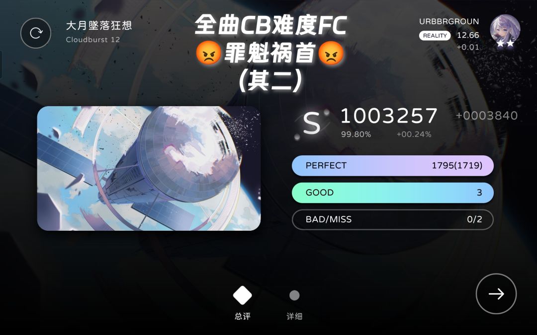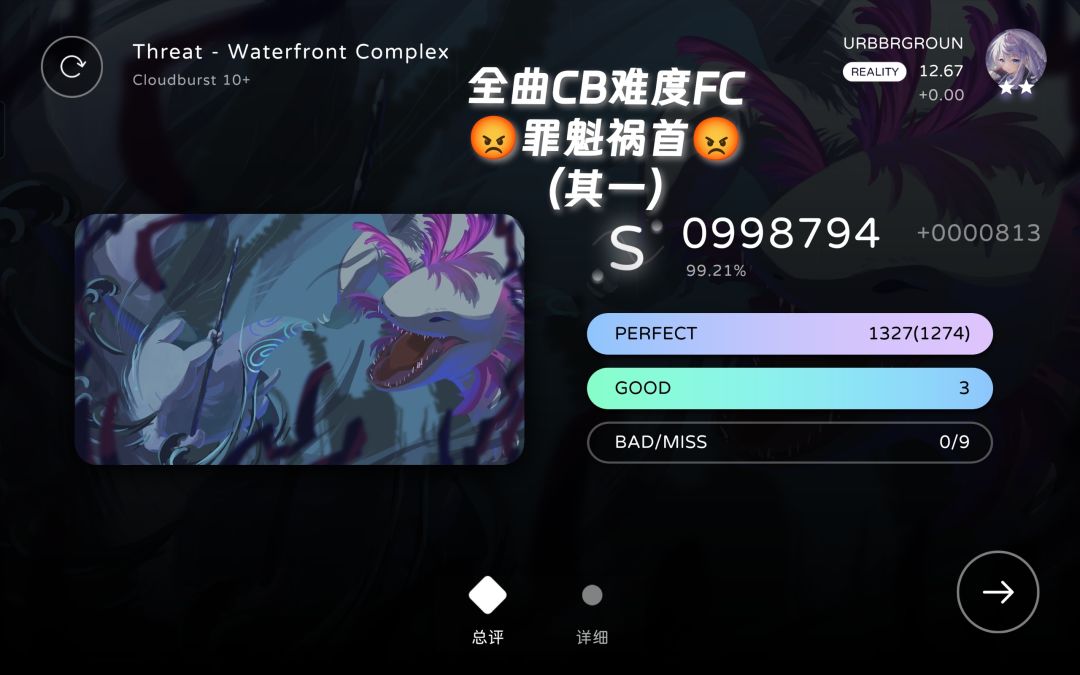 milthm中Reality:11.04→12.67(双星)+全曲CB难度FC/AP(-2)