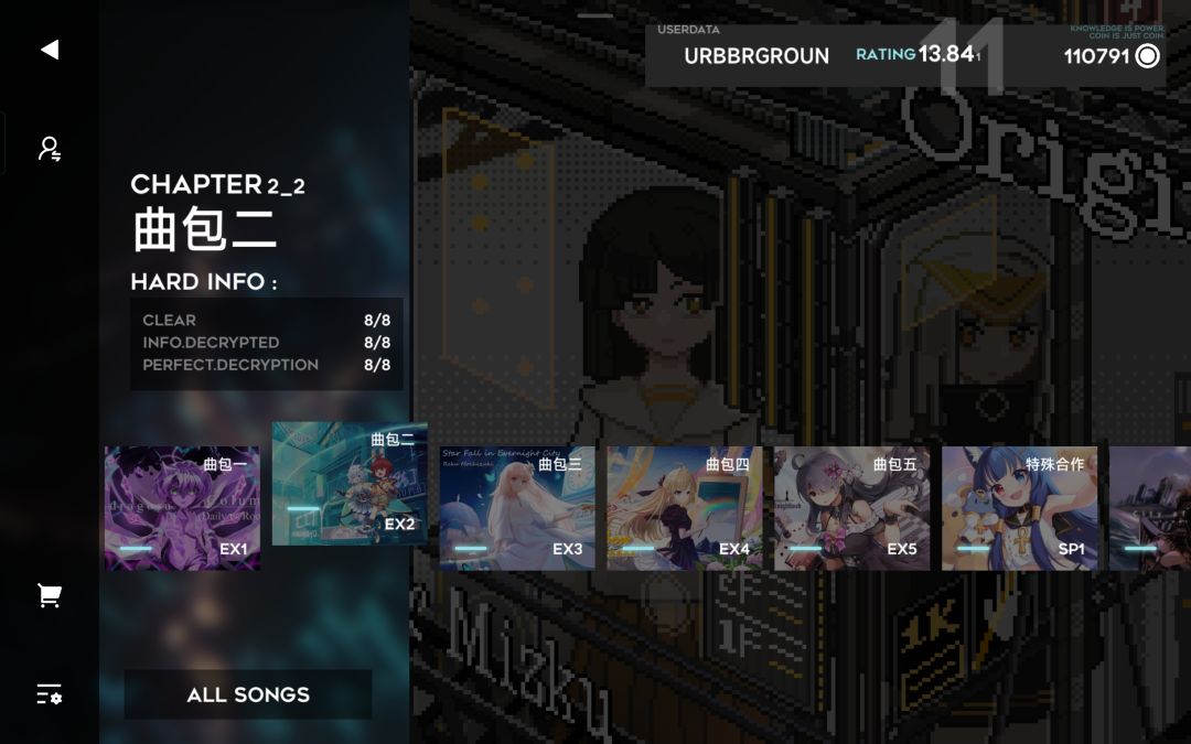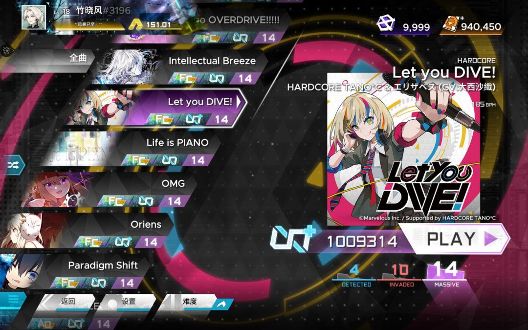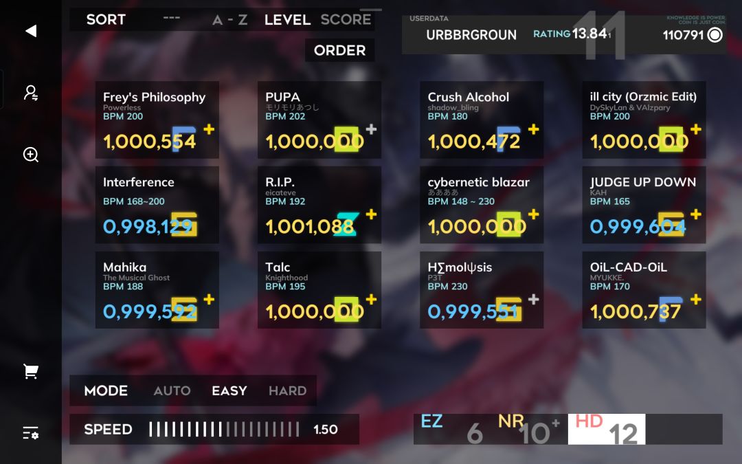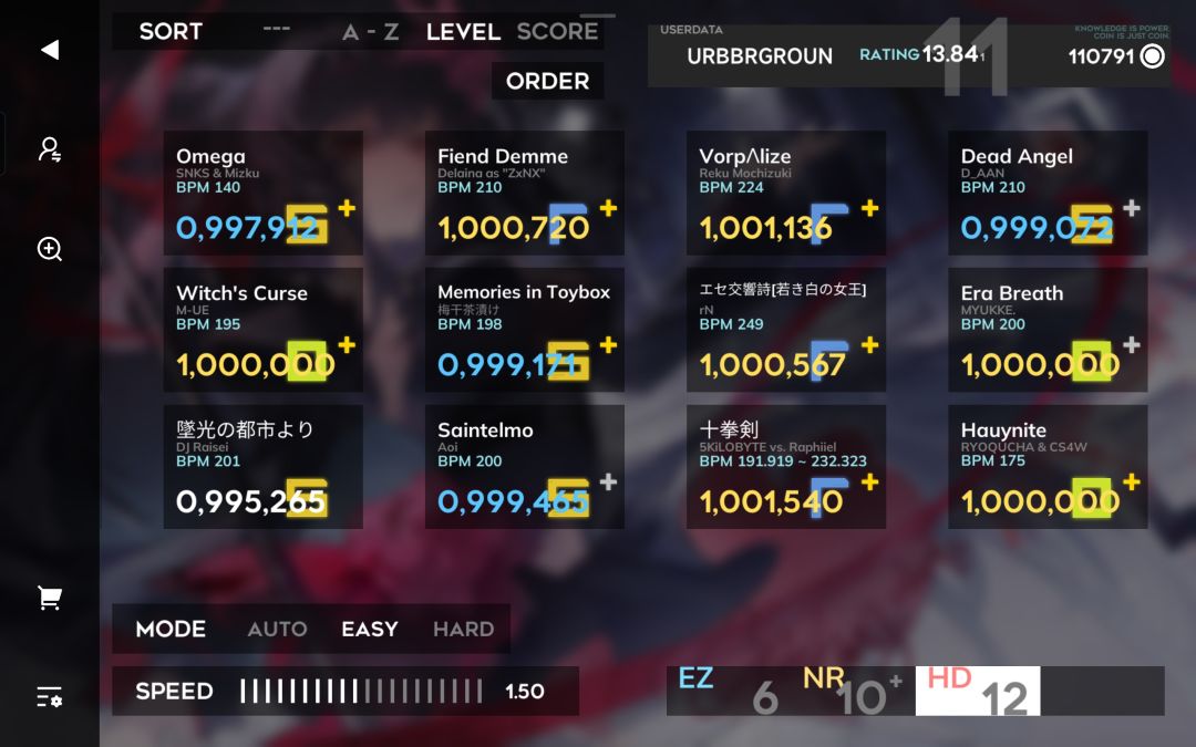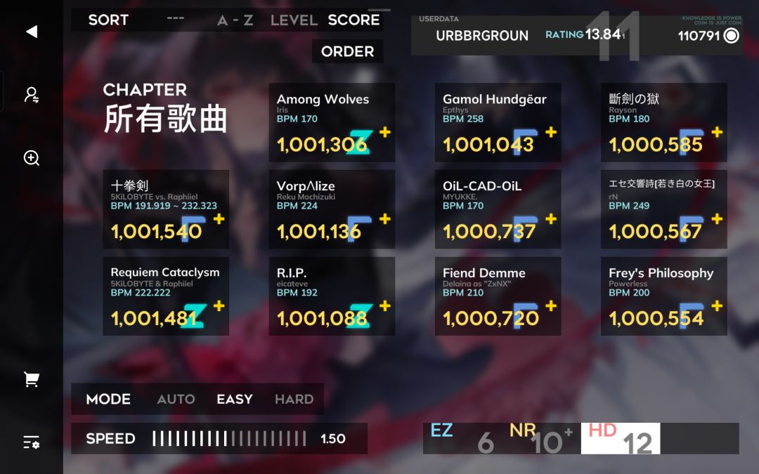 orzmic中Rating:13.002(2次方)→13.841(11次方)+11个曲包AS制霸