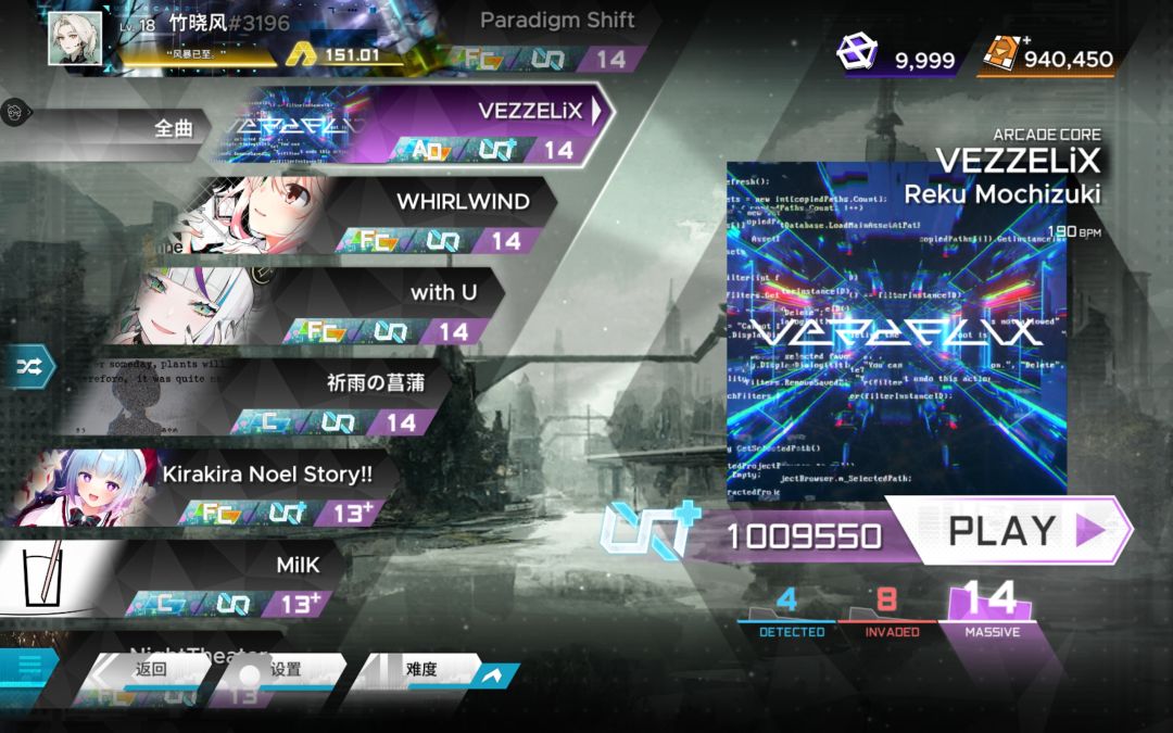 (零氪)范式:起源中Rating:151.01[历史最高]/MSV难度12~15+曲目全∞评/COP2025第一阶段最高排名全国314名并晋级第二阶段