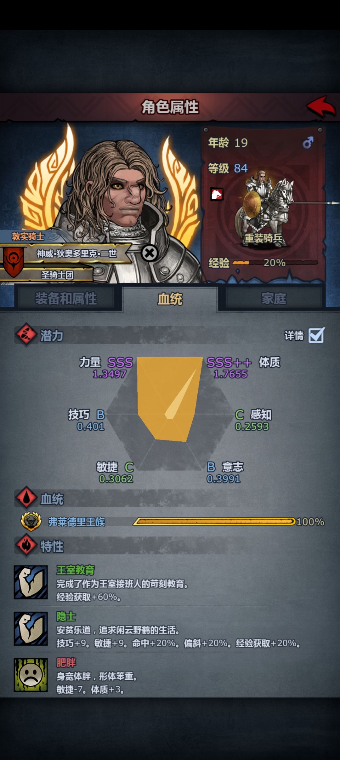 吃到85级重骑兵,蛮力学满,惯性和战马适当学习,