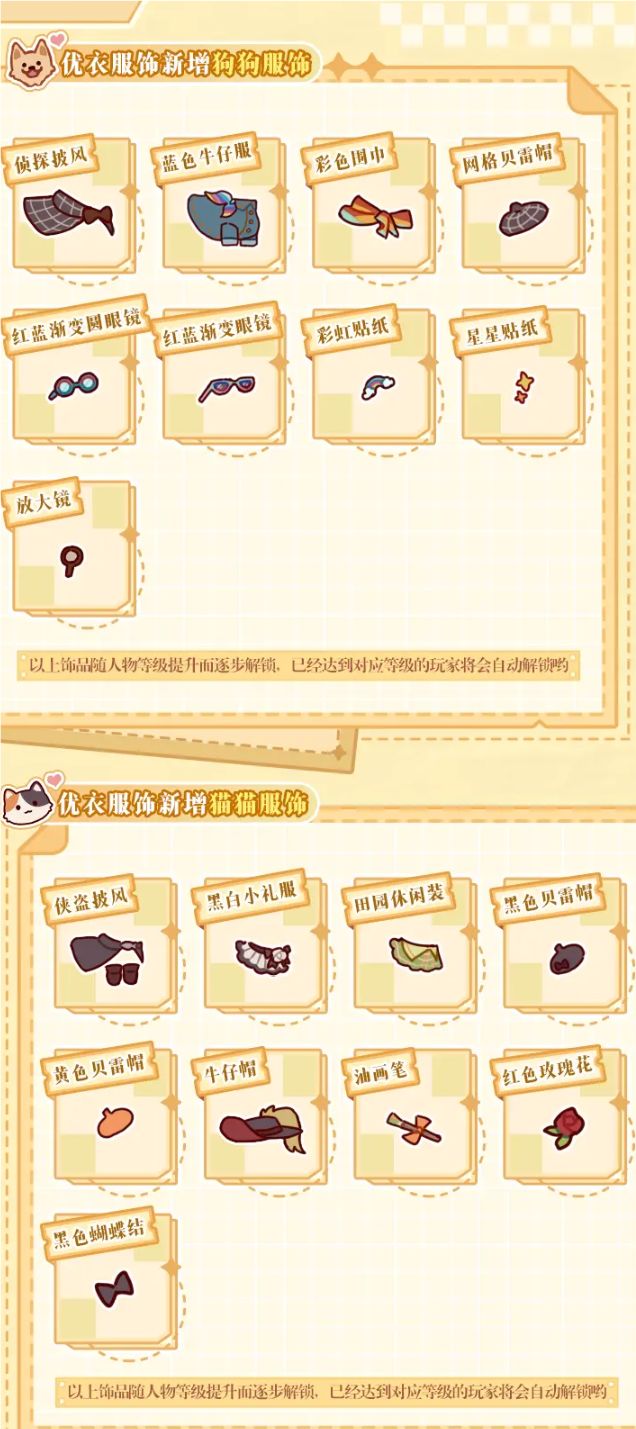 6.👗8月13日「优衣服饰 」上新,新增宠物&人物服饰。