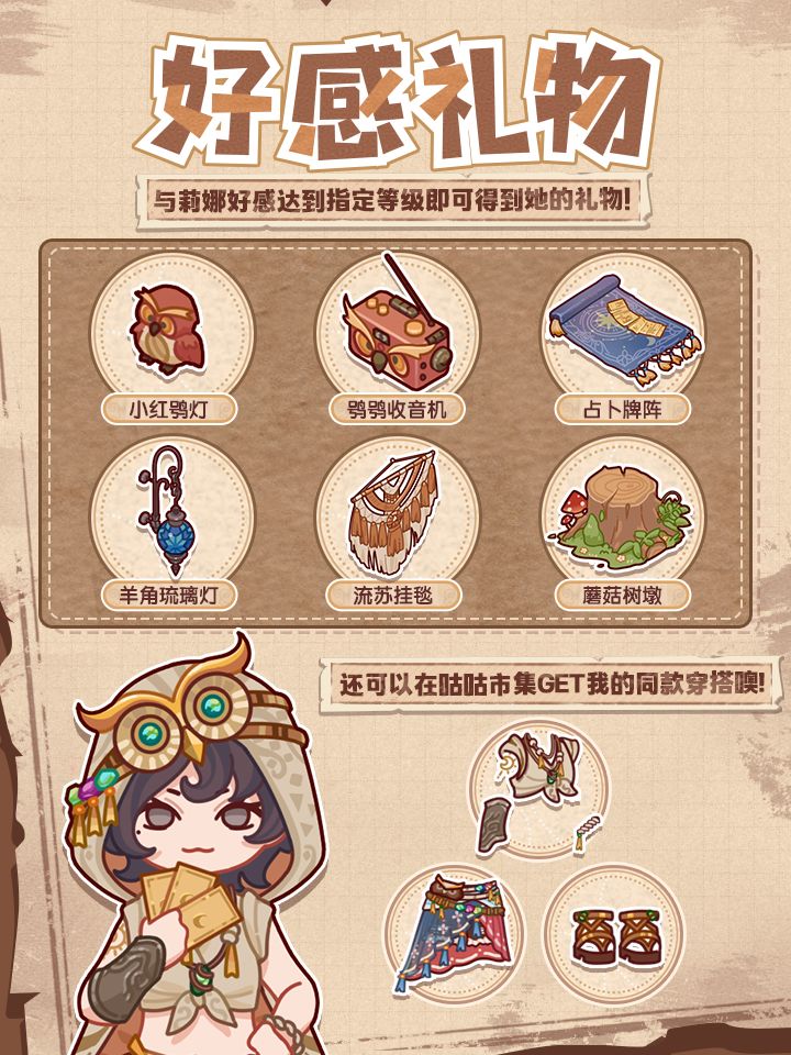 7.🦉8月13日全新店铺套间「猫头鹰号」上线~🎉新增朋友「莉娜」,可以前往「咕咕市集」购买莉娜同款服饰、「猫头鹰号」店铺套间家具。