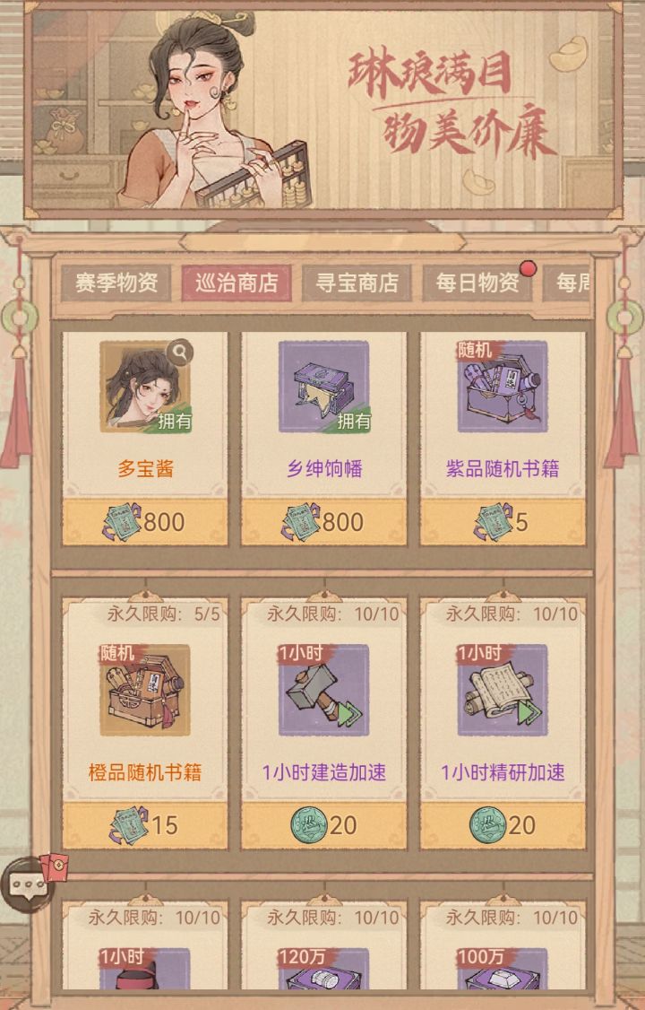 这两种奖励可在专属的“巡治商店”中兑换各类珍稀道具。