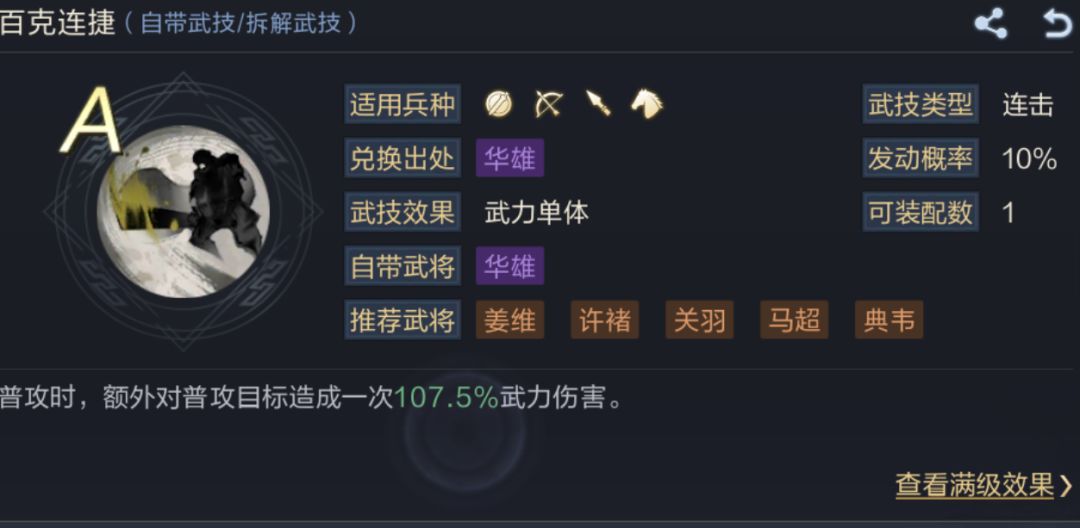 (扶危持倾)普攻额外造成伤害,回复兵力(百克连捷)普攻额外造成伤害,配搭这个主要是姜维攻速快,额外普攻触发的效果相对就快
