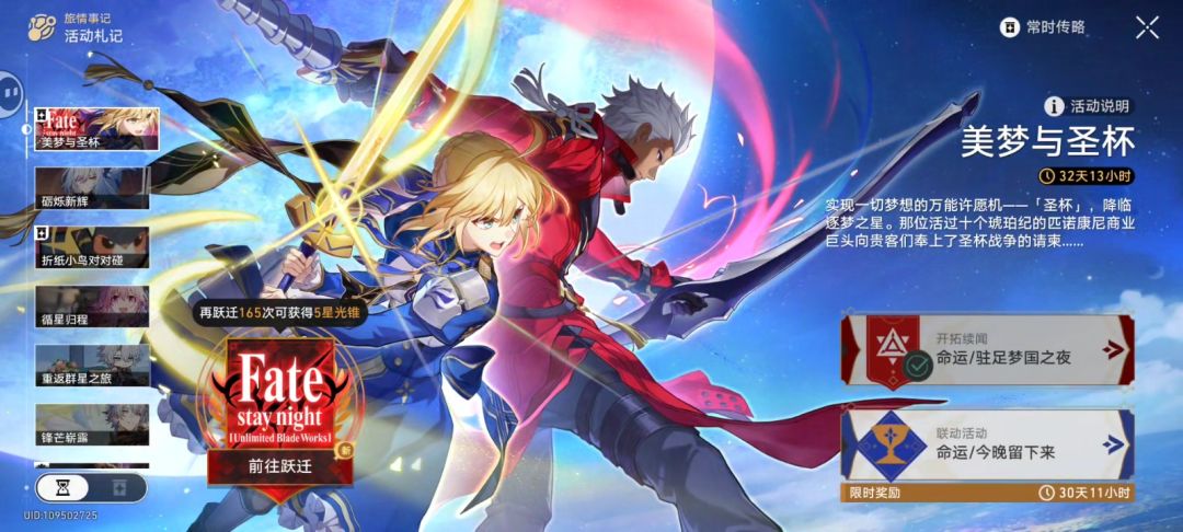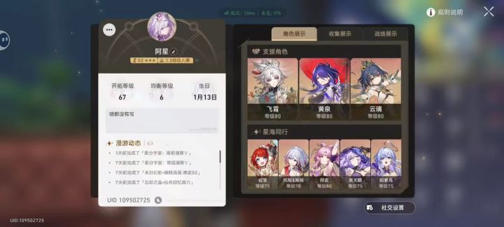 正文:1.我和同学玩过原神,我也是在同学的推荐下预约了这款游戏,记得当时放学后我就急匆匆的回家下载游戏,最后得了个109开头的UID,当时玩这游戏运气真的不是很好,77抽抽银狼结果还歪了,这让我丧失了动力退坑了一个月时间,后来在网上刷到了他的剧情于是又回去体验,也获得了我第一个up「刃」虽然很牢