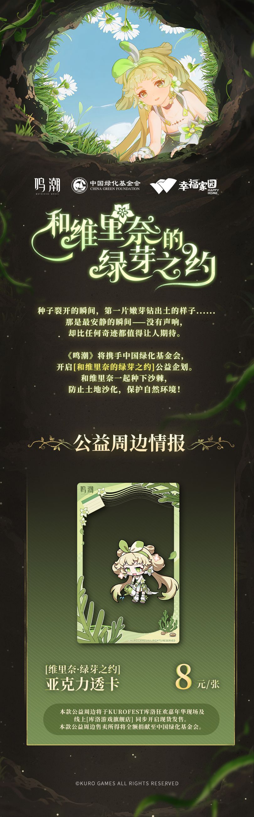 《鸣潮》将携手中国绿化基金会,开启「和维里奈的绿芽之约」公益企划。