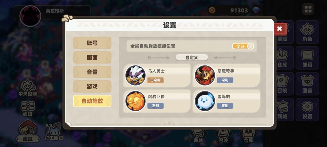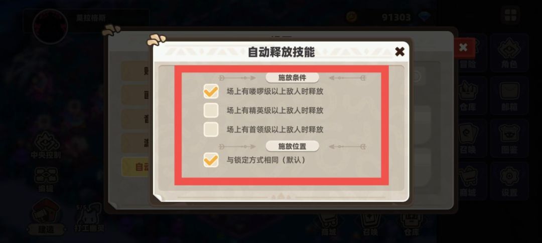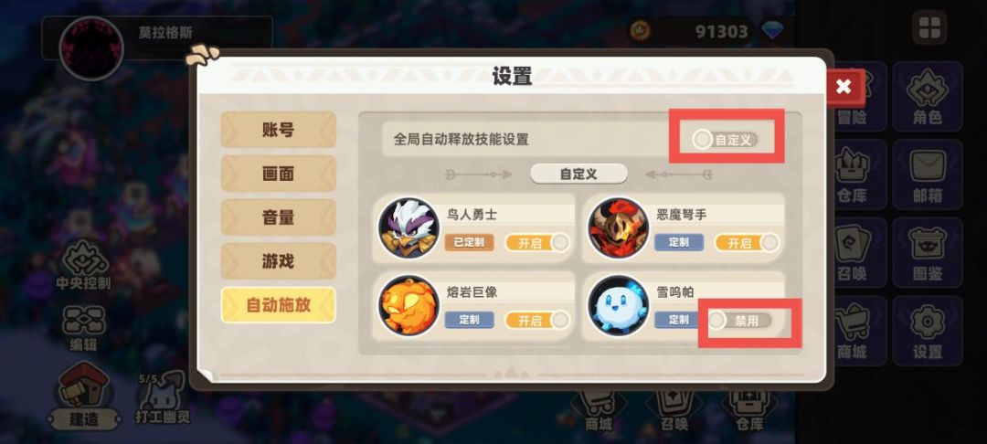如果我们想关闭技能的释放,可以点击右上角的全开