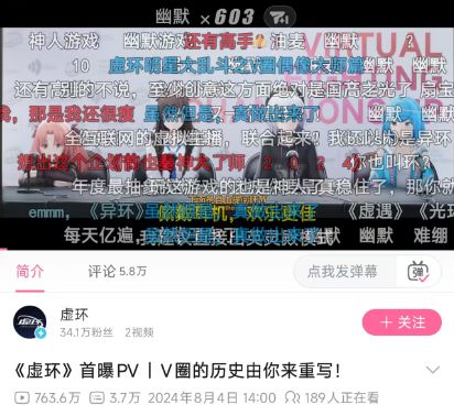 在2024年8月,腾讯CDD工作室的自主研发二次元游戏《虚环》首次公开,游戏主要核心是围绕V圈偶像养成叠加平行世界战斗玩法。