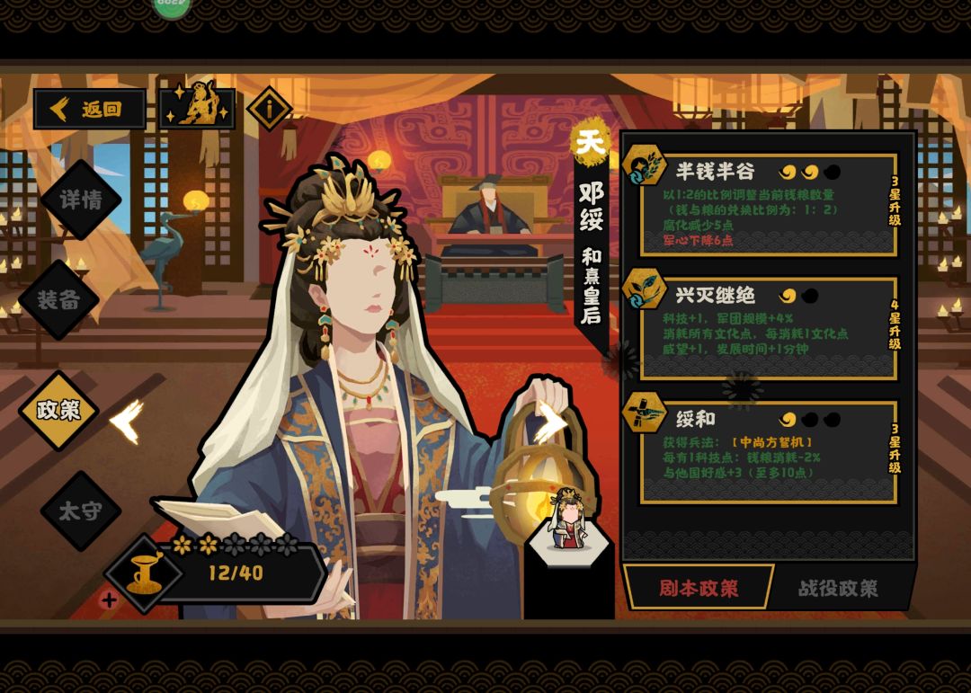 因为一般都玩挑战模式,我个人比较喜欢循环政策的,特别是诸侯伐董这种势力多的剧本,循环政策点的太爽了哈哈哈,目前没玩大唐剧本,大唐名臣几乎没怎么玩所以不包括: