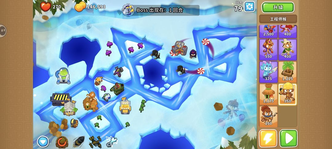 6.5(漏截图了).出250工程师超频上路农场和英雄,补5级飞镖猴和205忍者。
