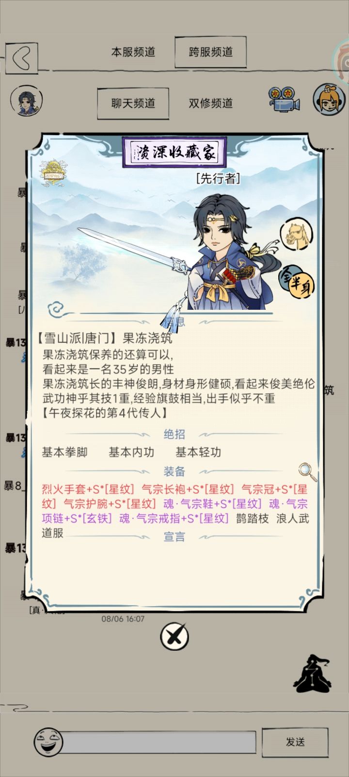 最强的武学,在一开始就有,就是基🐔基(基本拳脚,基本内功,基本轻功),在化境手撕六脉,脚踢十字,肘击如来,羞辱六阳,很轻松的打上了化境第一,强度简直搞得可怕。