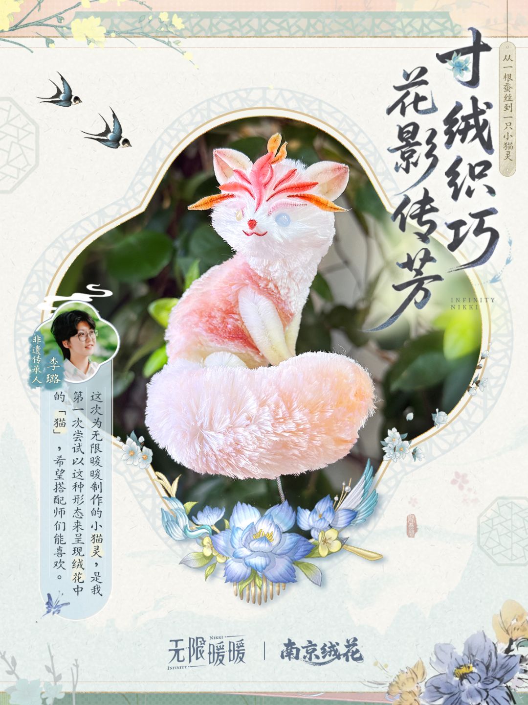 《无限暖暖》特邀南京绒花、缂丝团扇与徐州香包的三位非遗传承人,以奇迹大陆的故事为灵感,将千年技艺与丹青屿的风物交织,用一针一线细细描绘旅途的美好。