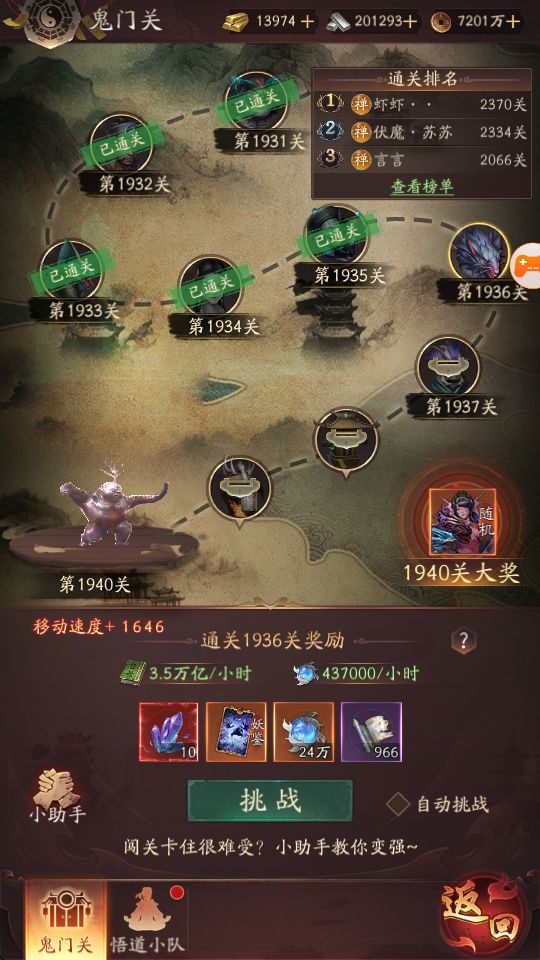 1.鬼门关,道友们可以通过通关鬼门关提升角色等级并获取妖晶、妖鉴、奇书经验等,有助于妖鉴和奇书的养成。