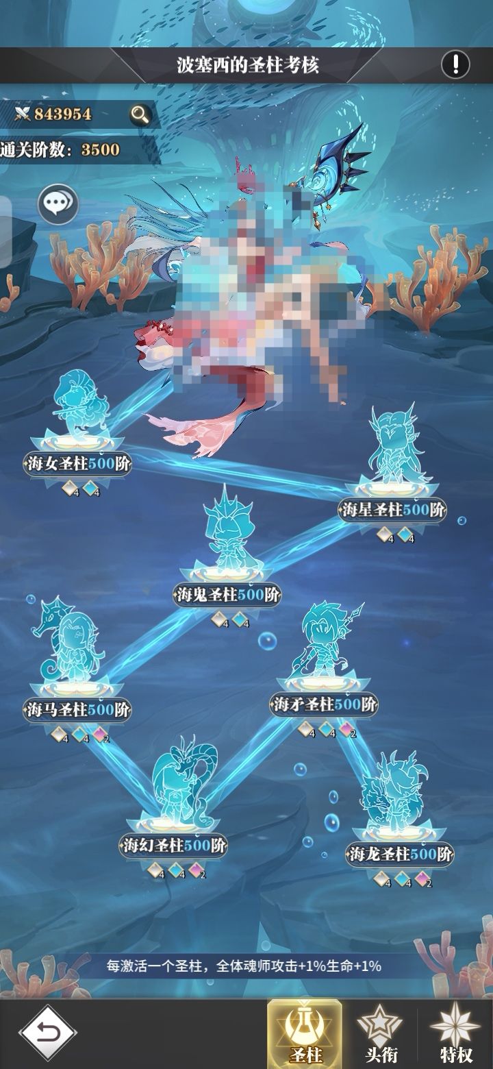 以前出过一篇圣柱的攻略帮助大家快速拿6级头,不好意思过了那么久才出阶进版的通关攻略,因为没有高等级天使,天使只有8星。无奈普攻圣柱直到今天才打通,我应该也算是用普通白沉香作主C通关海矛第一人了。(图1-3)