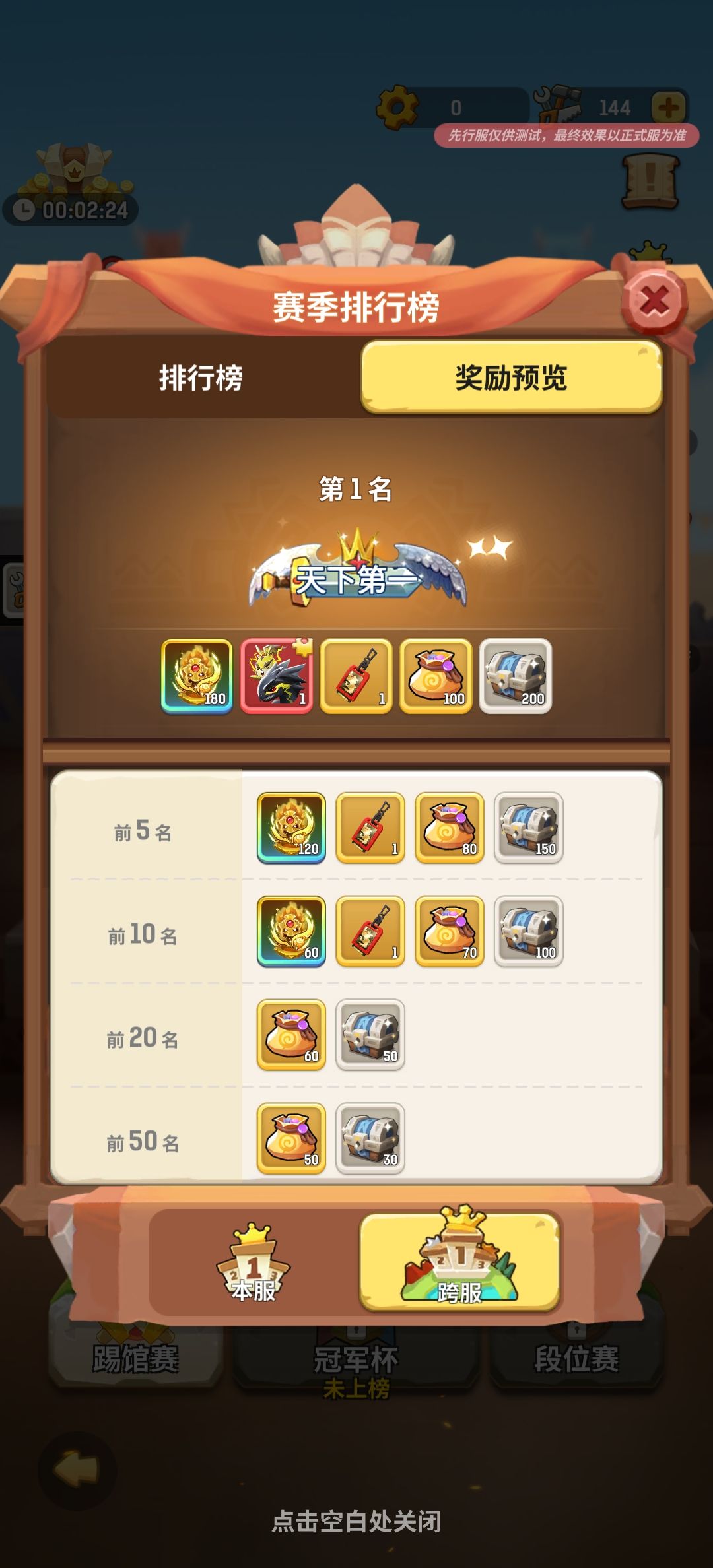强度颇高的赛季,也会有更好的奖励1.新圣器只有一个,对应一个无须解锁的格子,取得本服前10就可以拿,如果同时为跨服前10,则拿的更多2.目前只开放的玩法,只给一些海星,不过后面肯定有更为丰富的奖励...