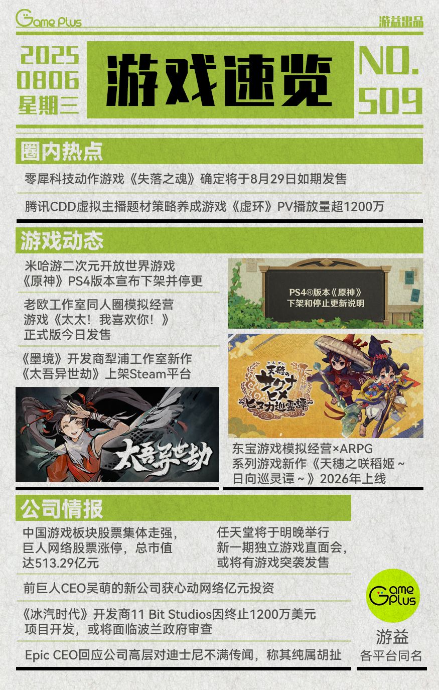 游戏行业值得关注的信息-08.06