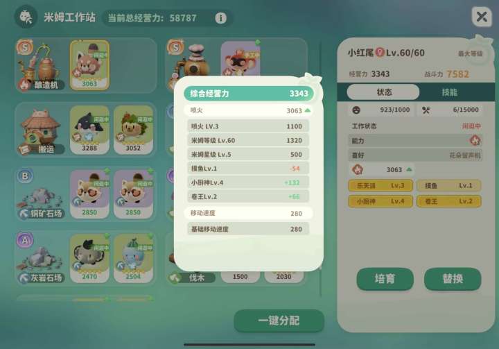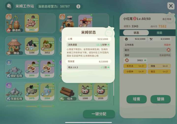 如果同时具备摸鱼和2级卷王,生产线上的米姆能减少15%食物消耗,约等于一天能多出来17.6%的食物总量,换算成订单那就是白花花的银子!