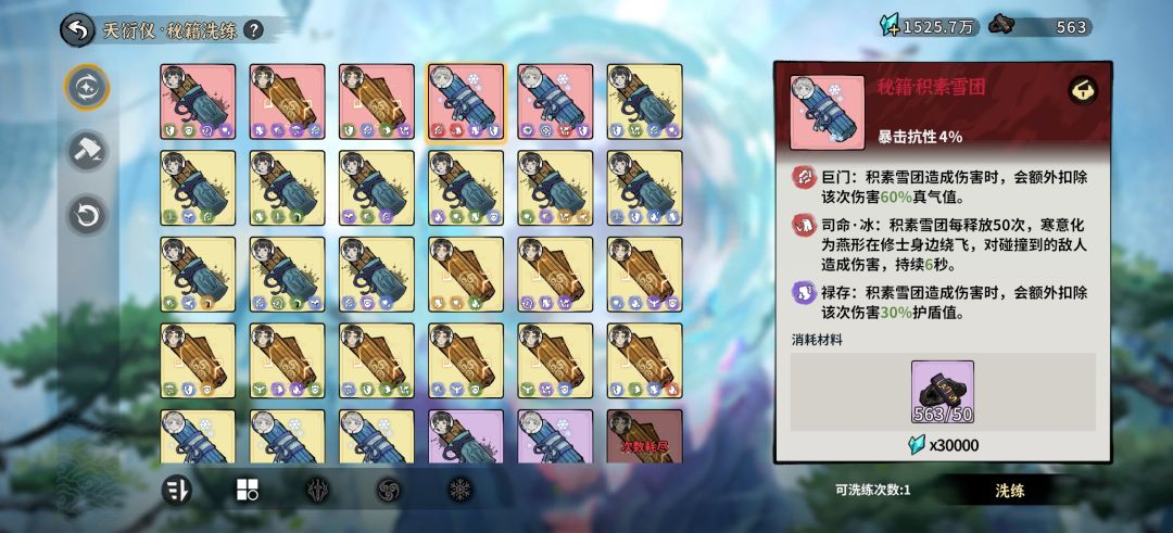 不同品质秘籍可洗练次数不一样