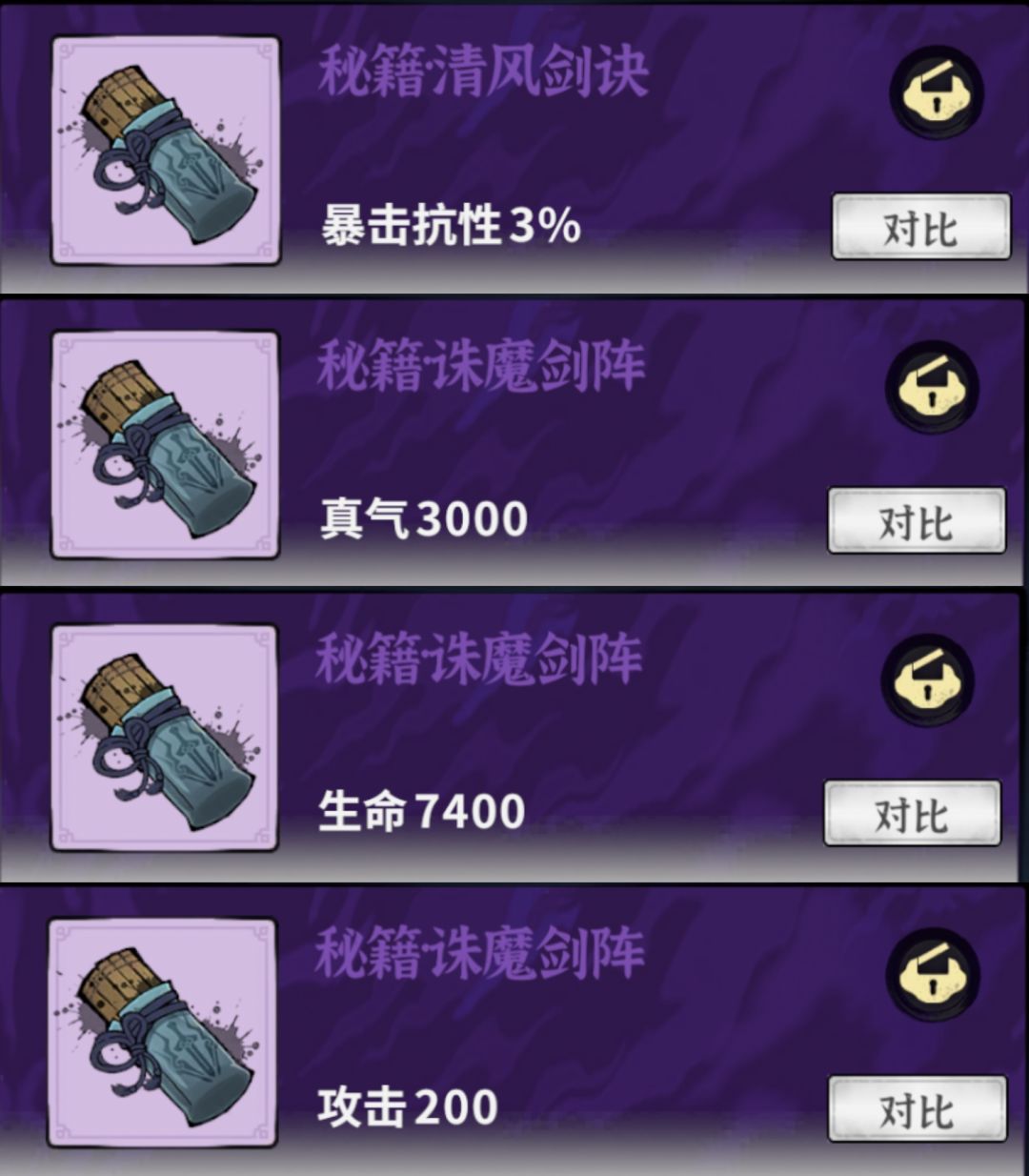 ⑴基础属性:同一秘籍基础属性分为四种,(攻击、生命、真气、暴击抗性)