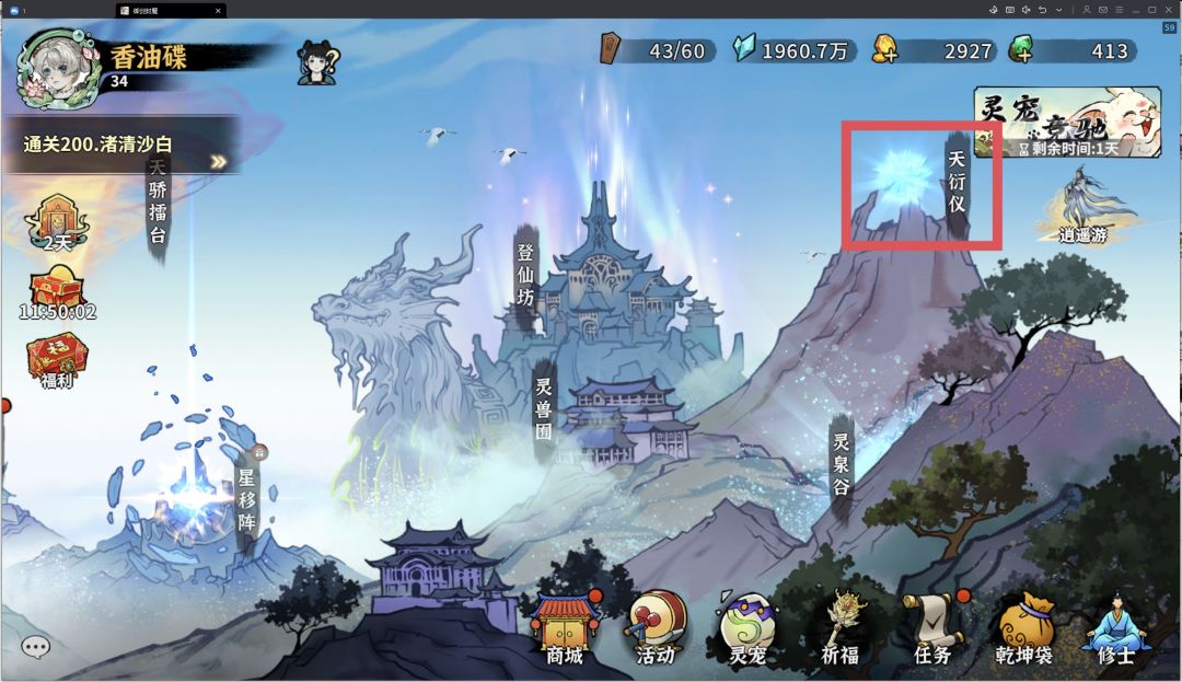 主界面右上角,天衍仪查看和培养秘籍(需要通关鸿蒙残阵难度4以后解锁)