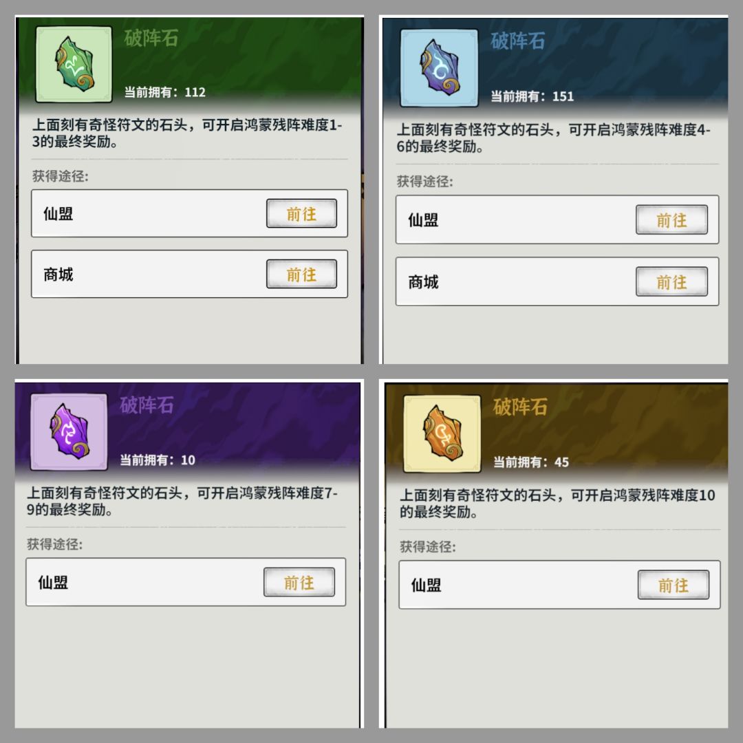 进入残阵需要消耗1枚破阵石。