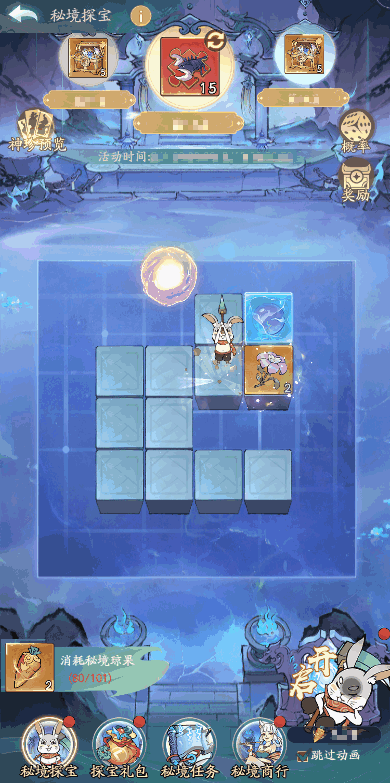 此次探宝不再由外向内逐层破阵,兔兔将在全图随机破开秘境格,待到破除本层所有秘境格即可前往下一层秘境。