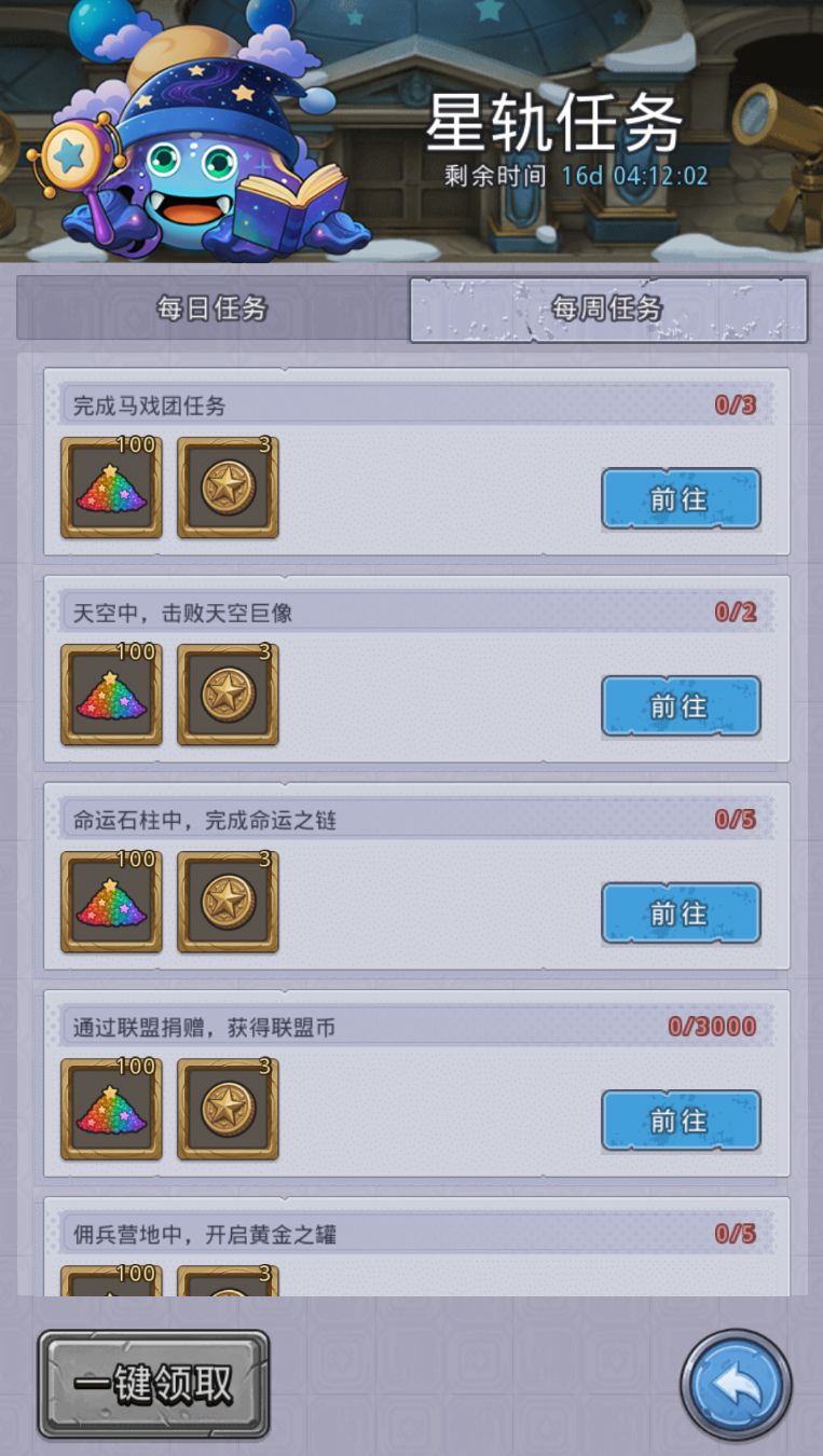 观星回廊又细分为星轨任务、星象共鸣、星界碑、星穹礼匣和星空商店五个界面