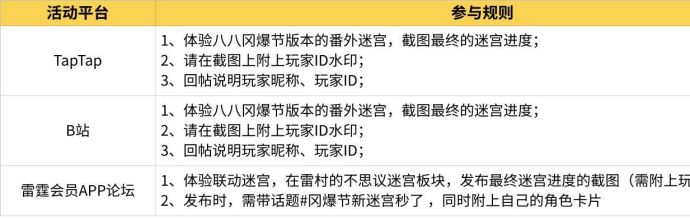 活动平台:TapTap、B站、雷霆会员APP论坛