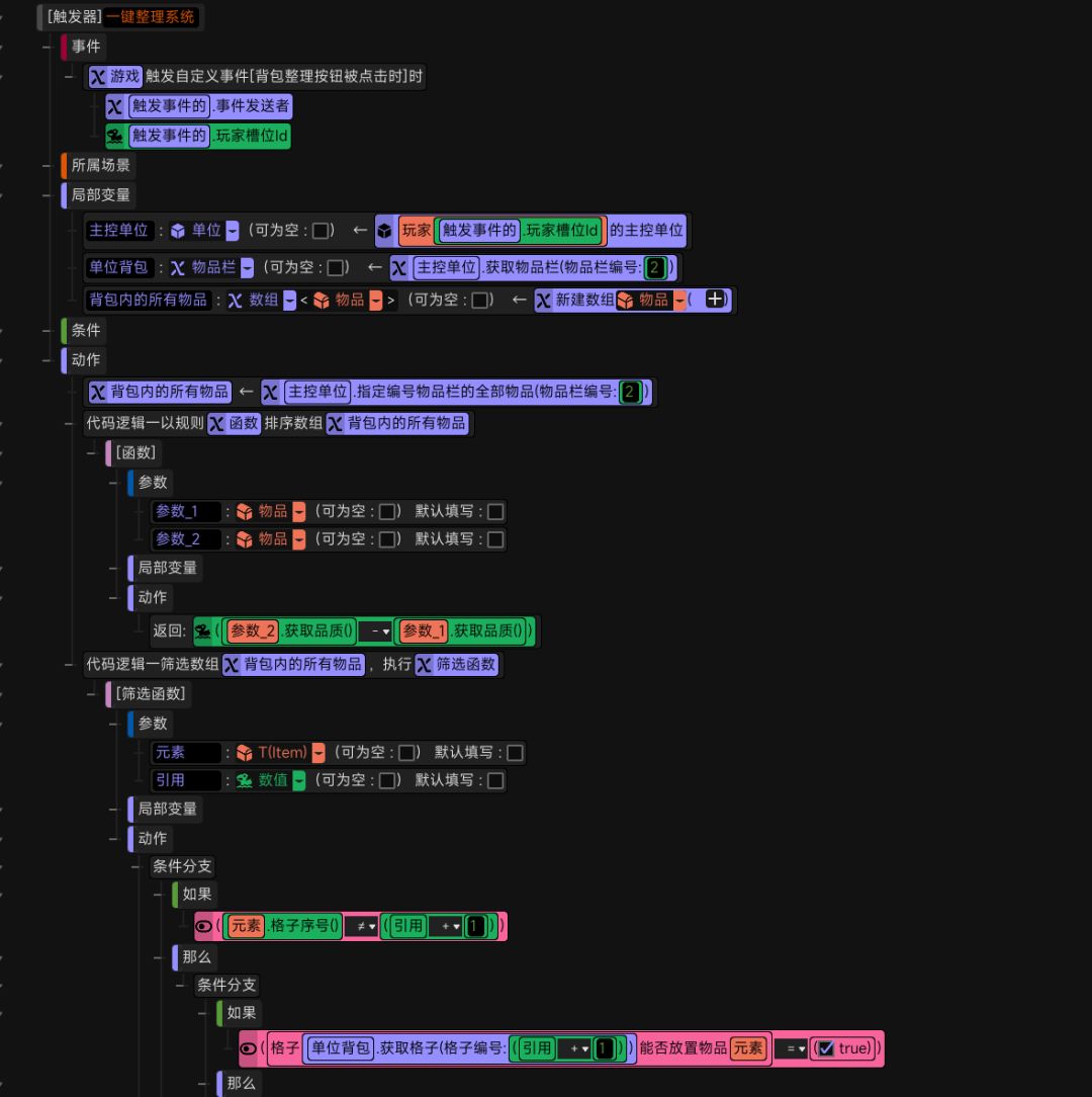 背包一键整理,星火编辑器触发几行就能轻松做出背包一键整理功能,纯小白也能学会~