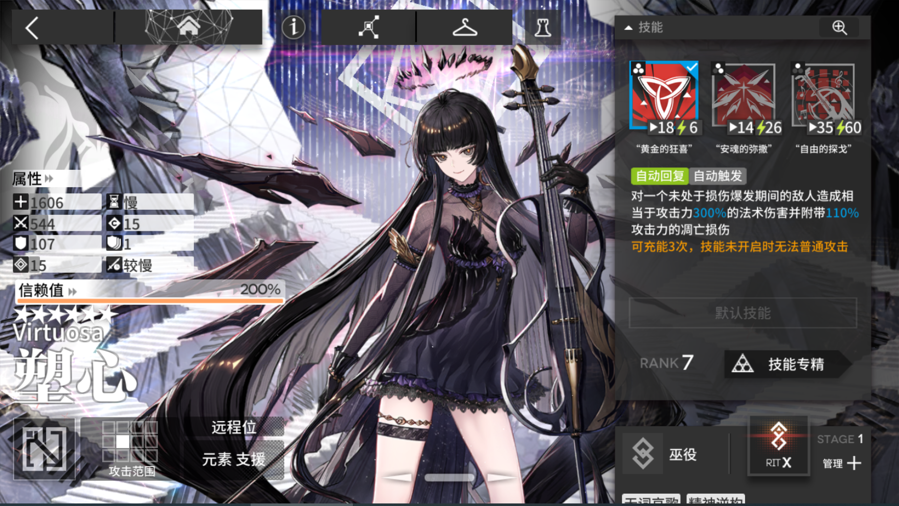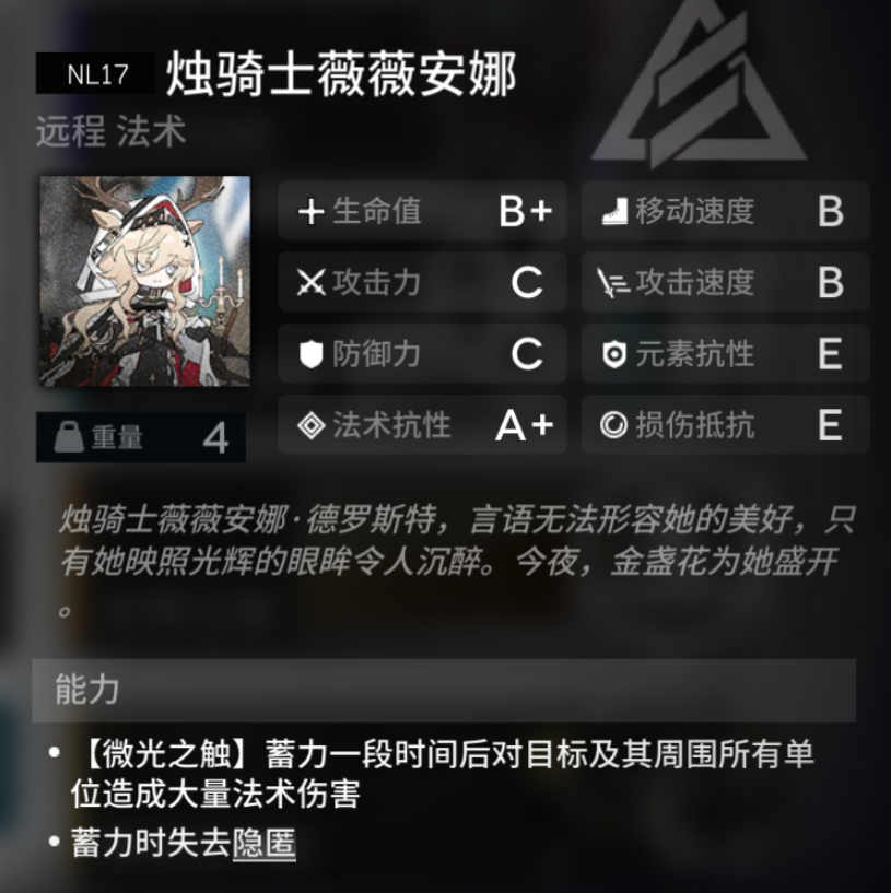 然后吧,作为干员,她就比剧情里当怪物的时候弱了无数倍。