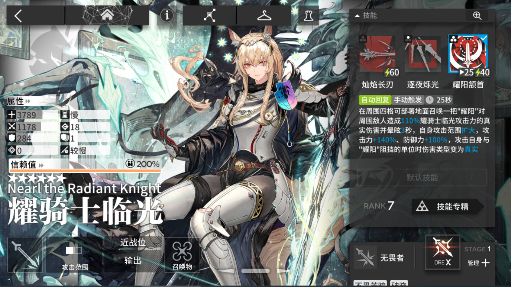 临光最大的问题是,她的技能真伤需要自己和耀阳阻挡这个前提条件,这样就把她的半十字攻击范围变成了+1格的近战范围,因为要阻挡才能有真伤,但是大部分时候她身板很脆,其实无法阻挡。