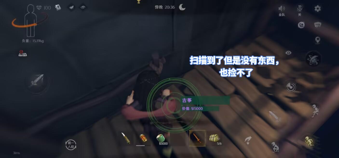 原因是本人开了一局古蜀遗迹,然后时间很晚了钱不够,我就又回去捡垃圾,碰到了百吨王古筝,终于好不容易钱够了但是扫描到了没有东西也捡不了,在后续好几局里面都有类似这种的情况,但是我队友却看得到也可以捡,也不单单只是古筝,其他的物品也有这种情况,这个bug官方赶快修复一下吧
