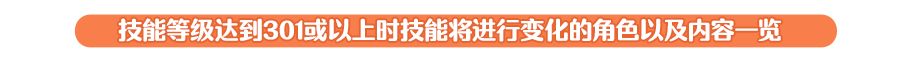 例:针对「一定时间内处于无敌状态」的技能,若技能等级达到301或以上,将新增物理防御力提升的效果,无敌状态的持续时间将固定不再提升,而物理防御力提升的效果将继续随着技能等级的提升而提升。