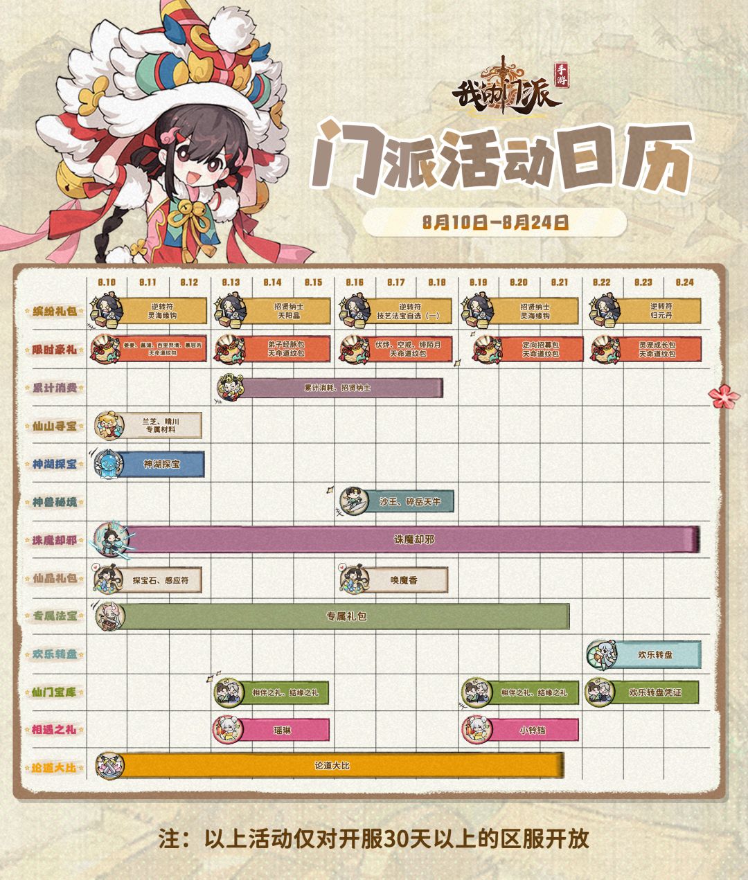 「门派活动日历」8月10日—8月24日