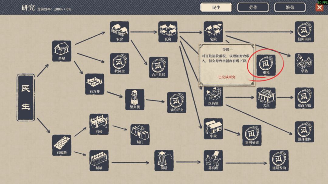 当书院准备就绪时,便可以让书院的学士们夜以继日的研究,帮大人们研究中的民生分支里点出重税政策,研究成功之后就可以在赋税里解锁重税选项啦!