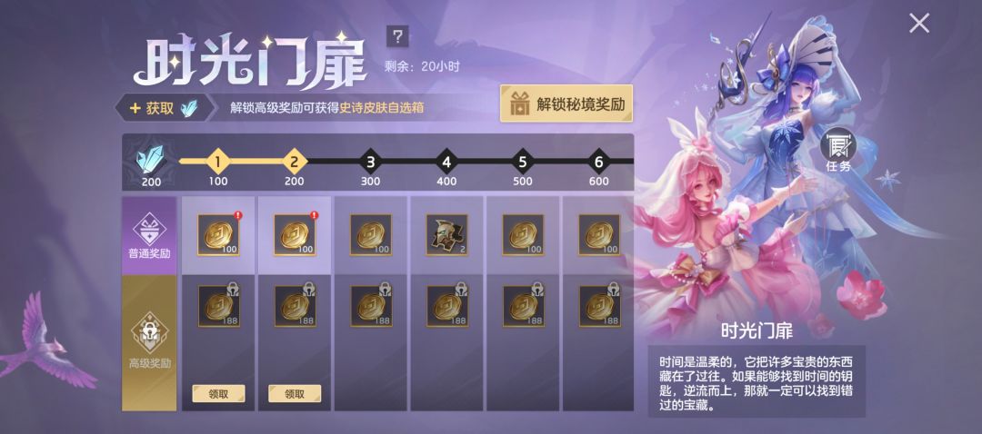 完成任务提升等级免费获取3天满级星盘特权卡、英雄碎片等奖励;付费30元可得史诗皮肤自选箱、头像自选箱;付费128元可额外获得传说限定皮肤自选箱(岚·芬芳缔造、艾璐妮·馨香尽)等奖励。