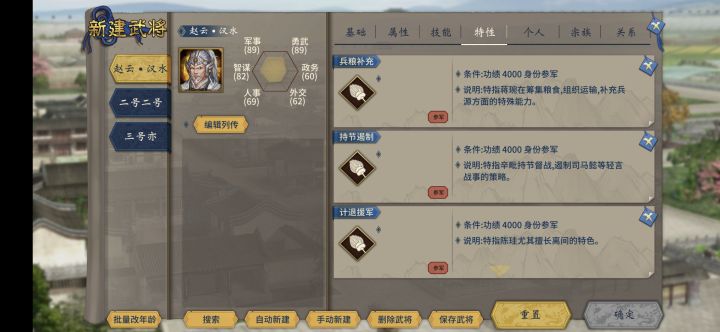 4汉室宗亲/身份/人脉+1魅力+1声望+800/条件:天赋特性/